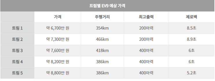 EV9 출시일 과 예상가격